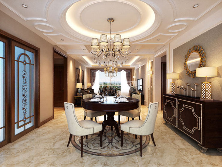 美式餐厅即西式餐厅风格为主,体会的是异国餐饮情调为目的。而背景墙则选择了护墙板与电视背景相结合,让餐厅更加的简洁大方。