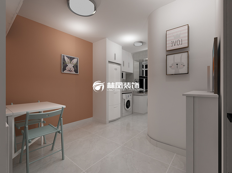 在这个40平的小房子里,客厅可谓是多功能房,在家里没有客人的时候客厅可以充当卧室。电视背景墙的格局设计师也仔细斟酌的。使其整体视觉感不沉闷。