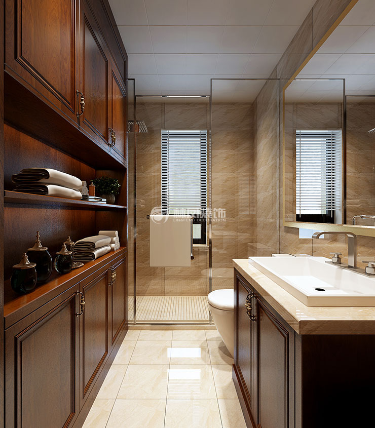 三室两厅一厨两卫,高层整体采用美式风格,色调以深色为主,体现美式的居家感和温馨感。
