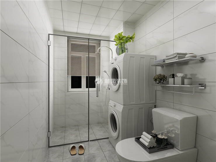 卫生间选择白色墙砖,灰色地砖,希望卫生间干净整洁,黑色浴屏框,让平淡的空间流线更加动感。