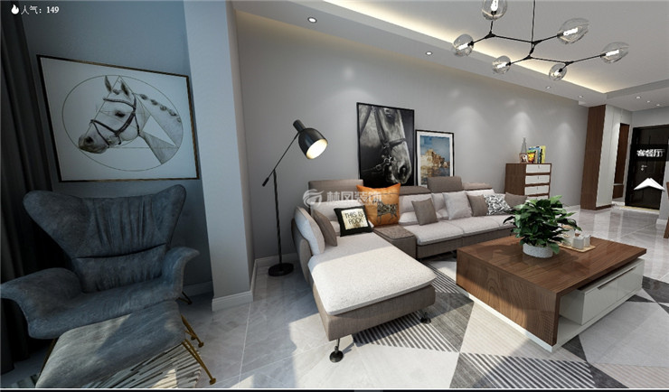 设计理念:现代简约风格以简洁时尚的效果营造了时尚的感觉屋内大量用灰色系。
