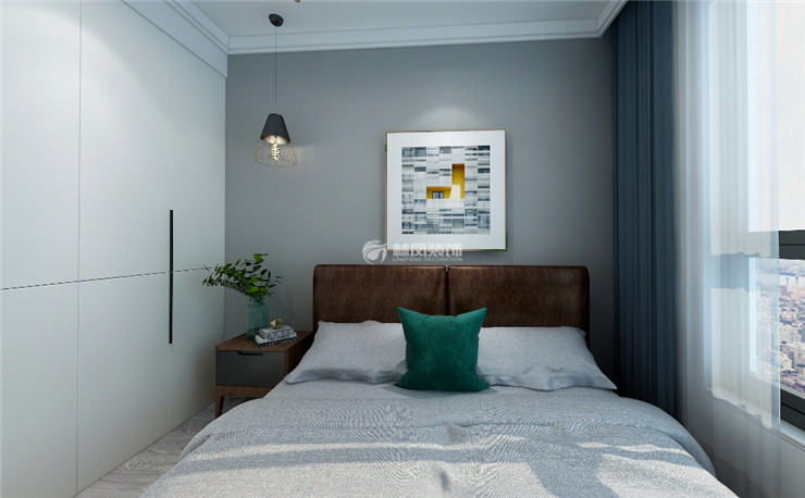 华润二十四城94平2居室现代风格林凤装饰的卧室不仅是休息睡眠的地方,更加体现了隐私性,床头为灰色系乳胶漆,营造了现代感简单舒适愉悦的感觉。