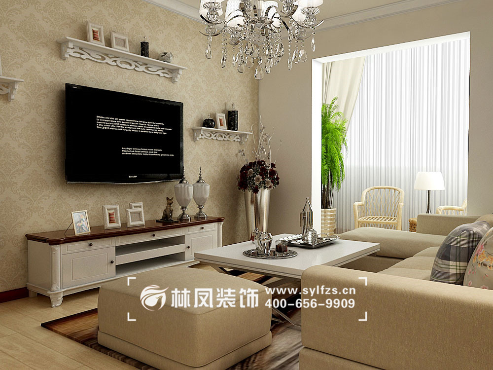整个客厅空间,暖黄色的沙发,搭配清新的抱枕,简洁的茶几,完美的将时尚与古典融合,白色的电视柜,米色的壁纸,使空间更为温馨。简洁融合,营造出假的温情感!