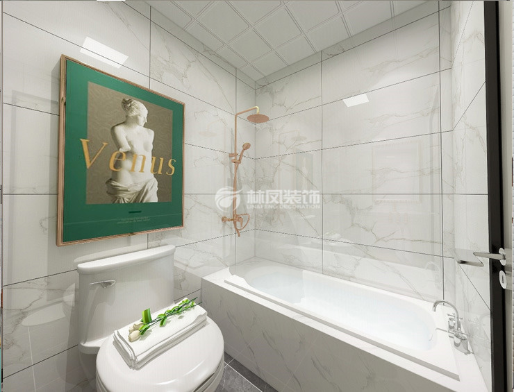 中海和平之门89平2居室现代混搭风格林凤装饰的卫生间延续了一贯的黑白灰风格,冰冷的理石配以金属装饰条让卫浴空间看起来更加的整洁,干净,样条简单的小花砖灵动了整个卫生间,让沐浴泡澡变得生动。