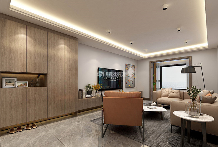 浦江御品140平2居室现代轻奢风格林凤装饰的客厅通过布置,浅色木纹,撞色的搭配在与使用者互动的同时又界定了空间的使用方式。每一处简单的造型都会在错综复杂的空间留下不同印记,这让人们明确了将会如何使用这个空间。
