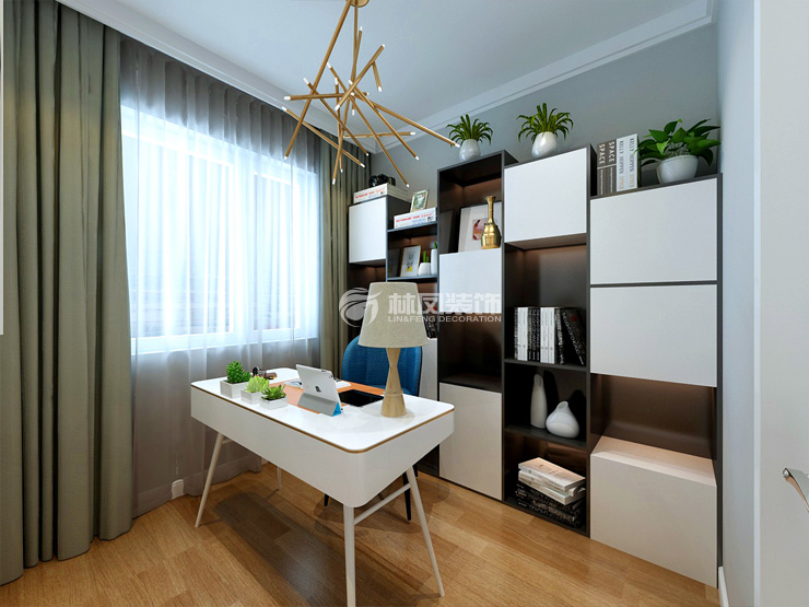 保利香槟国际89平三厅二厅现代风格林凤装饰的书房
