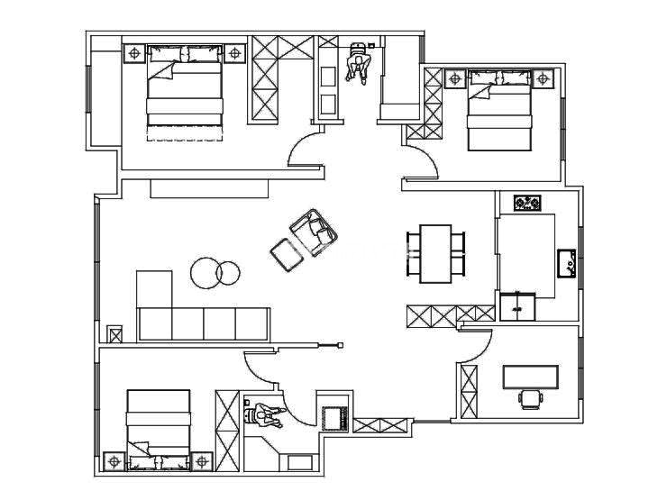 三室两厅一厨两卫,高层整体采用美式风格,色调以深色为主,体现美式的居家感和温馨感。