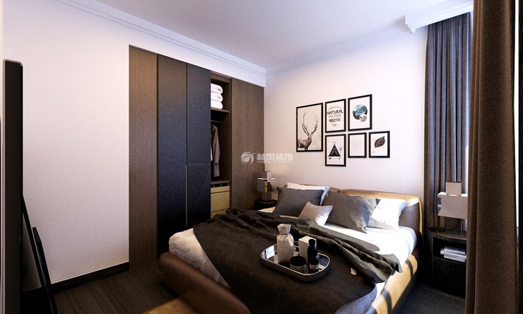 沈阳浑南区金地锦城78m²两室两厅林凤装饰的卧室是整个屋内带有隐私的空间。卧室选择了嵌入式衣柜,衣柜到顶增大收纳空间,同时在窗下设计飘窗又能收纳又能休闲的功能,可以在飘窗上喝喝茶,看看书,晒晒太阳非常舒适的空间。