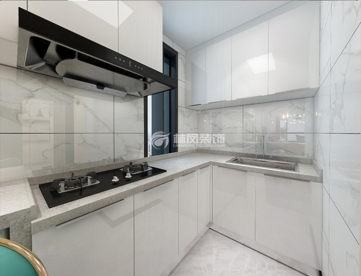 中海和平之门89平两室两厅现代混搭风格林凤装饰的厨房AB版的橱柜配色设计让厨房空间色彩对比鲜明,在操作台形式上选择了U型橱柜设计,增加厨房收纳,开放式厨房设计使得整个空间看起来更加开敞明亮,冰箱安置到厨房与餐厅之间,食材拿取方便,又避免了冰箱沾染油烟。