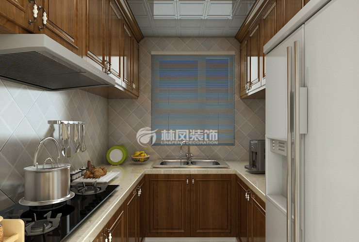 小阳台打通合为一个空间,拓展出开阔的活动空间,双开门冰箱整体镶嵌增加的厨房整体的美观度,双面橱柜让每个电器都有妥善的安置之处。一应俱全方便使用。