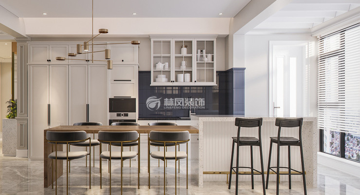 设计理念:屋主是一对新婚夫妻,喜欢美式轻奢风格,这套房是这对小夫妻买来作婚房使用的,由于空间过大很多空间都有很多不协调浪费的空间,业主与我沟通时表示,希望可以打通原本厨房餐厅的空间,改造为中西厨结合的方式与此同时深度挖掘空间的更多可能性。