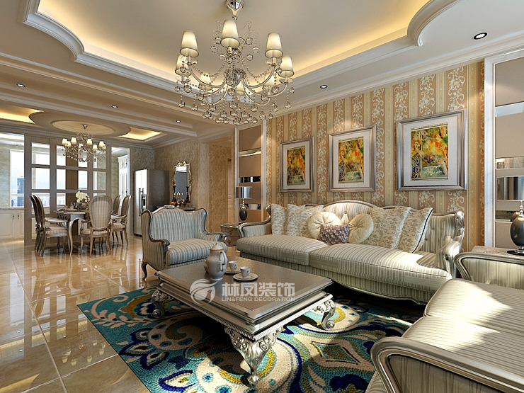 三室两厅一厨两卫,高层整体采用美式风格,色调以深色为主,体现美式的居家感和温馨感。