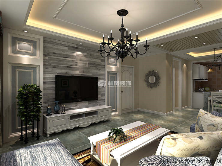 电视背景墙及棚面角线的使用特突出美式的特点同时简化了仿古风格一些复杂的元素,保持了原有的自然,同时,它融入现代简约美式风格的设计,使家具更富有现代的韵味,更加适合现代人的生活节奏,突出体现了一种简约的奢华,居家生活不再单调。根据个人的喜好,搭配一些简洁的美式木质棚面,会提升整个装修的效果。