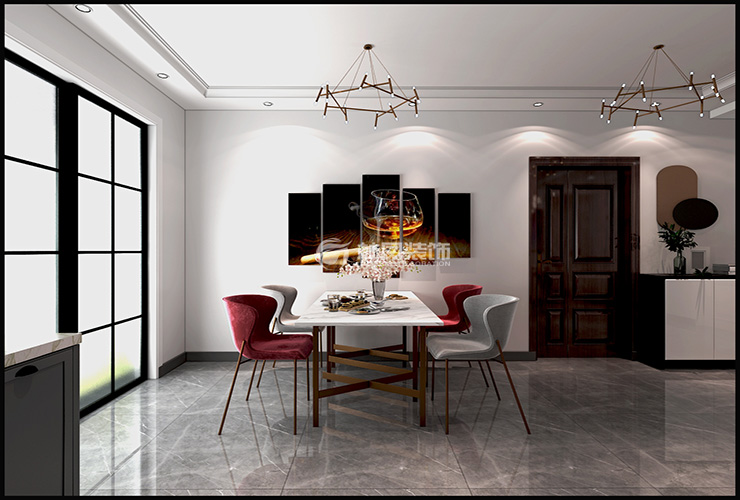 三室两厅一厨两卫,高层整体采用美式风格,色调以深色为主,体现美式的居家感和温馨感。
