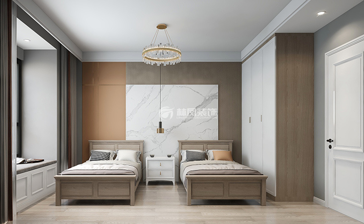 主卧设有衣帽间,增加了储物空间,又使整体空间更加简洁,法式家具的高床头增添氛围感,可以凸显法式风格的浪漫。客卧放置两张床,可以扩大居住空间,床头的硬包设计,彰显法式风格的大气,飘窗的设计,给简简单单的客卧增加了休闲区的功能。楼上儿童房的设计,都更能贴近孩子的喜好,在床边设计书桌,又能方便日常孩子学习。