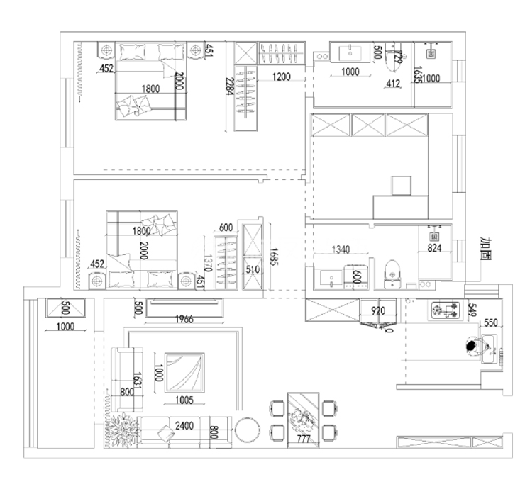 客户是一名成功人士,对于家的执念就是简单干净,客户衣服比较多,所以把每个空间都做了大衣柜,并且融入到设计里