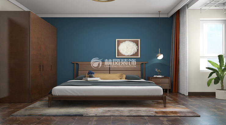 三室两厅一厨两卫,高层整体采用美式风格,色调以深色为主,体现美式的居家感和温馨感。