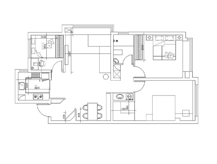 客厅与餐厅厨房相连接,让原本比较小的空间显得更大视野更开阔,主要以白色、灰色以辅来点缀,既简洁又不失单调,主题颜色为白色,提升了空间的造型感觉,让空间风格更加简洁。