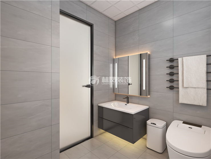 卫生间设计说明:卫生间整体色调以灰色为主,这样与洁具做了个很好的区分,一个颜色增大了空间的视觉效果。
