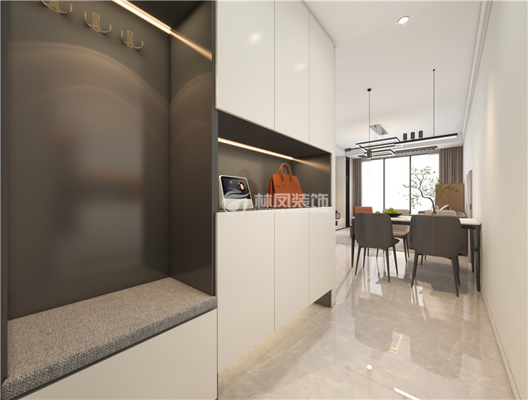 客户是一名成功人士,对于家的执念就是简单干净,客户衣服比较多,所以把每个空间都做了大衣柜,并且融入到设计里