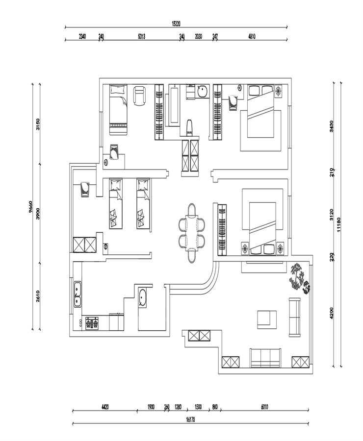 三室两厅一厨两卫,高层整体采用美式风格,色调以深色为主,体现美式的居家感和温馨感。