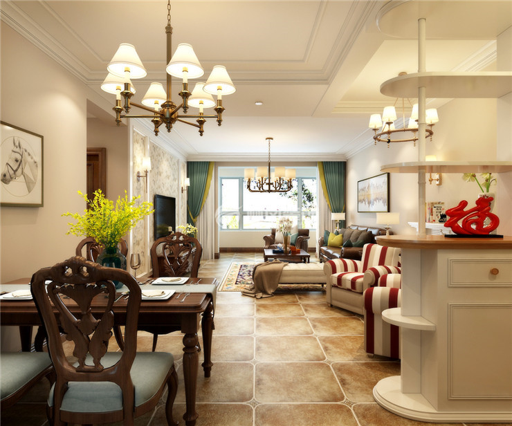 设计理念:清新素雅为主导,让简约美式设计说明了中国化的美式风格,更符合了中国人的审美观念,让内敛的感觉显现出来。在简欧风格中传统欧式风格的高雅被保留下来,简化了欧式风格,让线条更加的流畅,也让气氛更贴近自然。