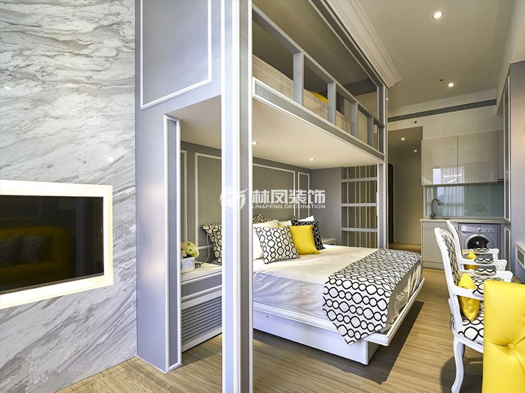 客户是一名成功人士,对于家的执念就是简单干净,客户衣服比较多,所以把每个空间都做了大衣柜,并且融入到设计里
