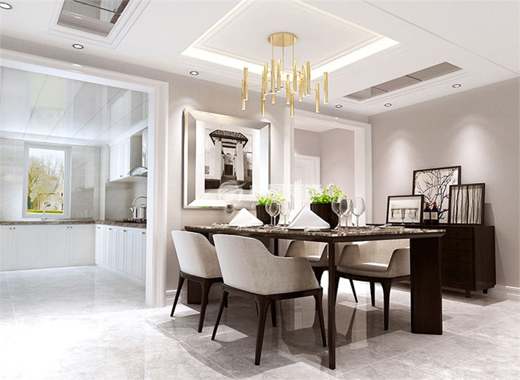 本案餐厅没有什么复杂的装饰,木色的背景给业主带来了一种温馨,让业主在就餐的过程中可以得以放松。