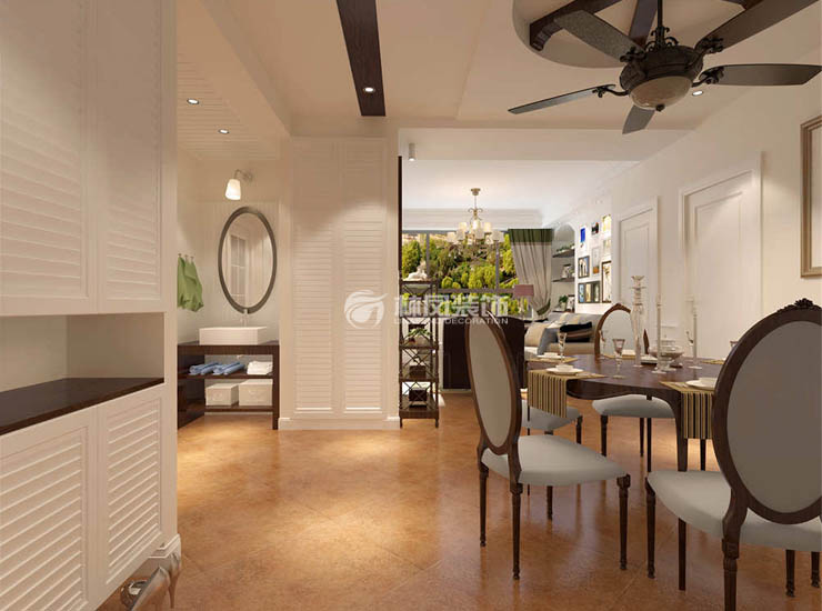 三室两厅一厨两卫,高层整体采用美式风格,色调以深色为主,体现美式的居家感和温馨感。