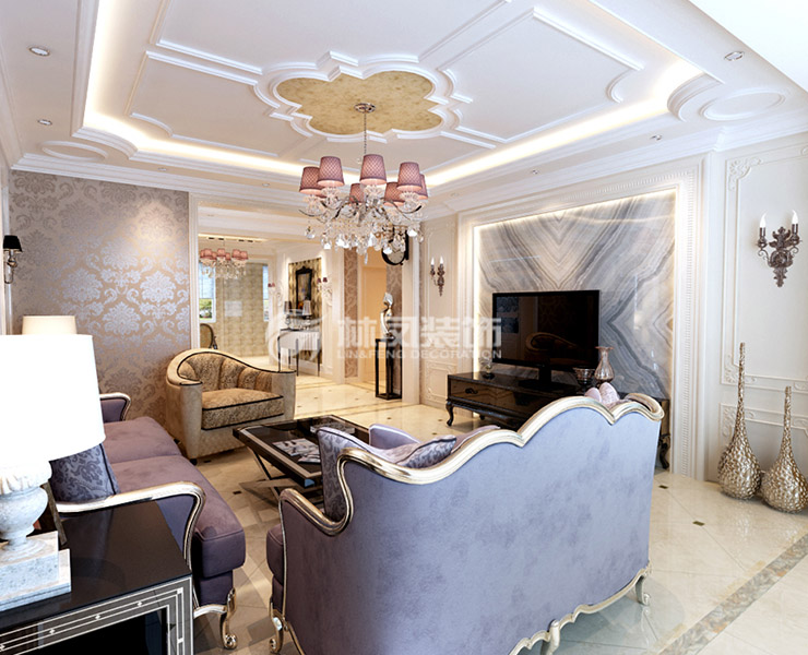 设计理念:本案以欧式新古典风格为主的设计,将新古典特有的设计元素引入欧式装修家居中,对原有建筑加以修饰,运用地砖拼花,将空间很明显的区分出来,让空间在独立的同时还相互联系。