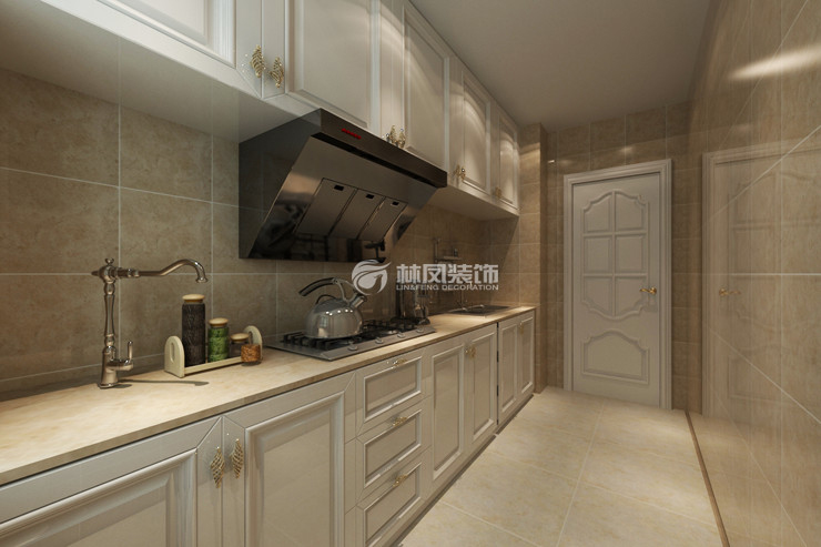 厨房也是以暖色为基础,一字型的橱柜,炉具和洗菜盆进行了一个更好的分化更符合人体工程学业,从开始从冰箱里拿出食材然后进行,洗菜,切菜,炒菜,上菜,没到工序更加合理。