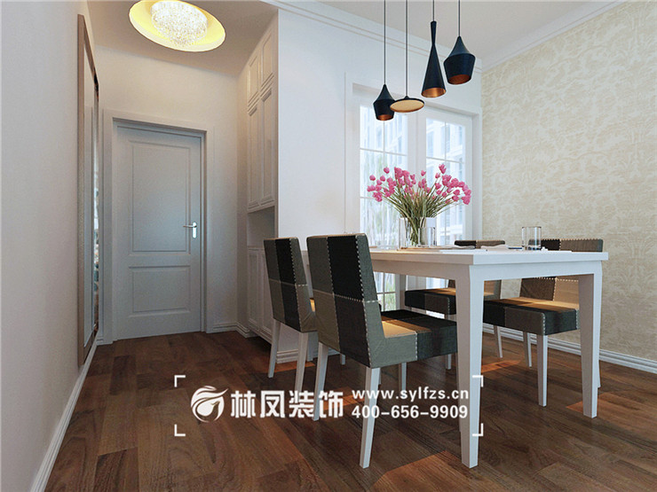 独立的餐厅区,漂亮时尚的吊灯格外抢眼,由于紧挨着厨房,后期就餐非常省事。