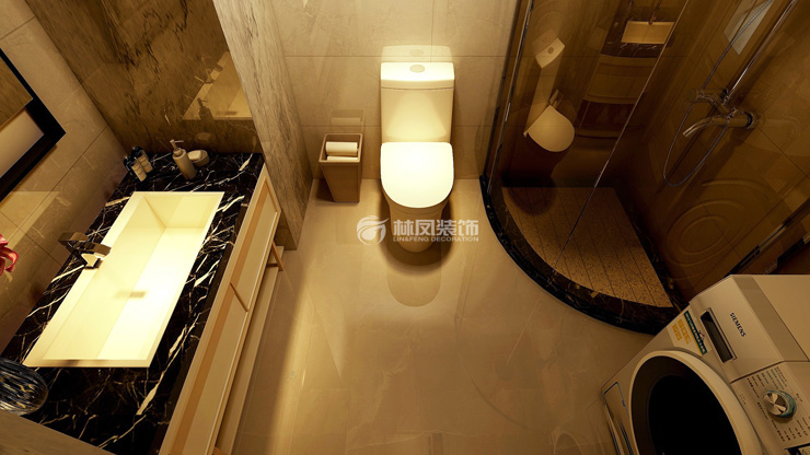 卫生间采用淡黄色瓷砖使卫生间变得明亮,卫生间的大镜子则使卫生间变得更宽敞,此外,卫生间巧妙的把浴缸和淋浴花洒隔开,给生活增添了更多的空间和乐趣。