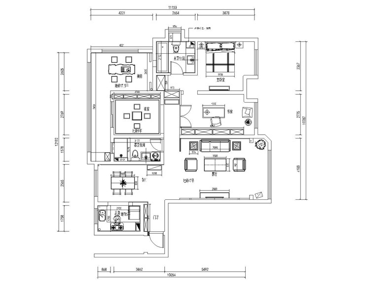 三室两厅一厨两卫,高层整体采用美式风格,色调以深色为主,体现美式的居家感和温馨感。