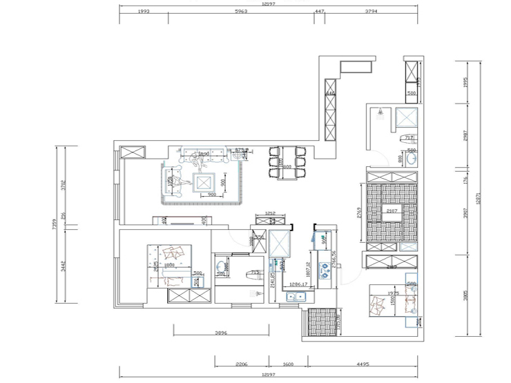 三室两厅一厨两卫,高层整体采用美式风格,色调以深色为主,体现美式的居家感和温馨感。