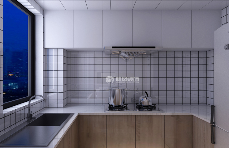 开放式厨房,让整个空间更大,更亮堂,U型柜的设计,让我们能多更多的储物空间。