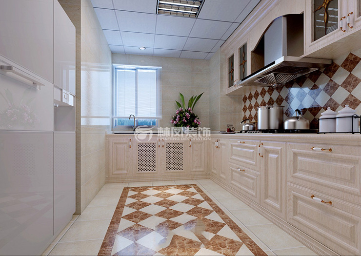 U型橱柜兼具实用性与美观性,木色橱柜呈现出来的完美视觉,让一家人拥有最佳厨房互动。