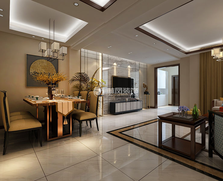 三室两厅一厨两卫,高层整体采用美式风格,色调以深色为主,体现美式的居家感和温馨感。