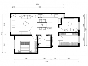 当前位置: 首页 > 装修案例效果图 > 轻奢,三居,91㎡ - 120㎡,户型图
