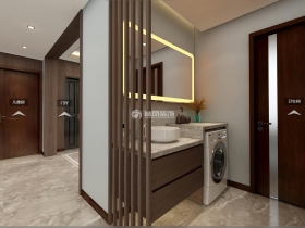 本案是新中式风格与现代元素的融合体;大量使用了原木色与灰色形成对空间的分割,使整体空间立体感加强,配上简单的传统中式线条视觉上更加丰满大气。