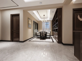 本案主要以沉稳、大气的新中式风格为主,设计中大量运用了中式造型和中式元素作为修饰,无处不体现出了和其他装修风格的不同,突出中式风格的特点,给人一种新中式装修的独特之美