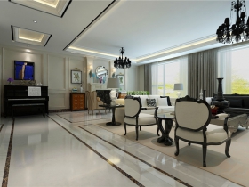 本案例定位为欧式风格,家具以实木家具,顶棚造型复杂,从而体现欧式风格的奢华大气。