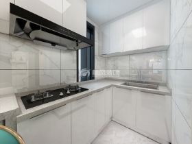 本案以简洁明快的设计风格 打造了一个对比强烈,质感鲜明的现代居住空间,主要以墨绿色为主色调,在地面,厨房等位置大量使用,优雅且时尚。吊顶的设计更是以简单且有创意的造型处理,既满足了功能使用,又不失简洁大气。增添了空间的层次感,更使灯光多元化。