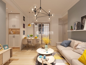 荣盛锦绣天地75平两居室北欧风格装修效果以简单明亮的颜色备受现代人的喜欢,在充分利用空间的同时,加入现代元素,使空间温馨又时尚,同时充满了文艺。