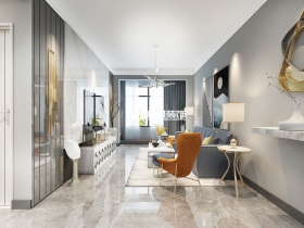 本案以黑白灰为基调,在空间处理上主要表现轻松自然,色彩要求大小色块组合,低彩度、线条简单突出现代简约。