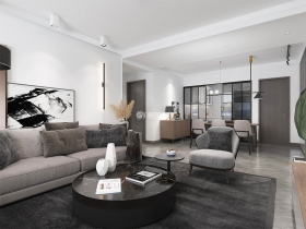 本案是新中式风格与现代元素的融合体;大量使用了原木色与灰色形成对空间的分割,使整体空间立体感加强,配上简单的传统中式线条视觉上更加丰满大气。