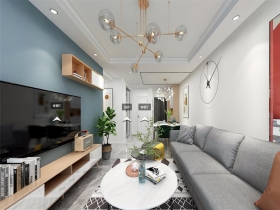 本案以现代简约风格为主线,整体以彩色墙面装饰,配以灰调石材,打造一种温馨舒适的家居环境。